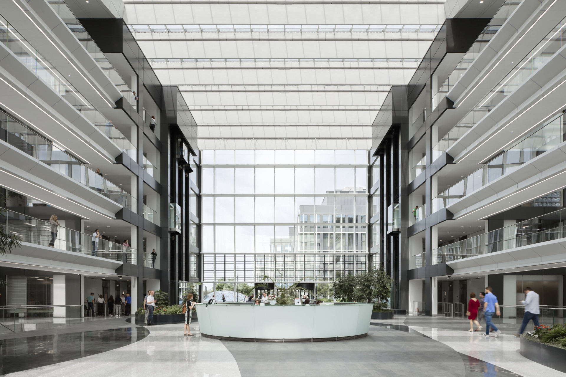 Просторный атриум и зона ресепшн